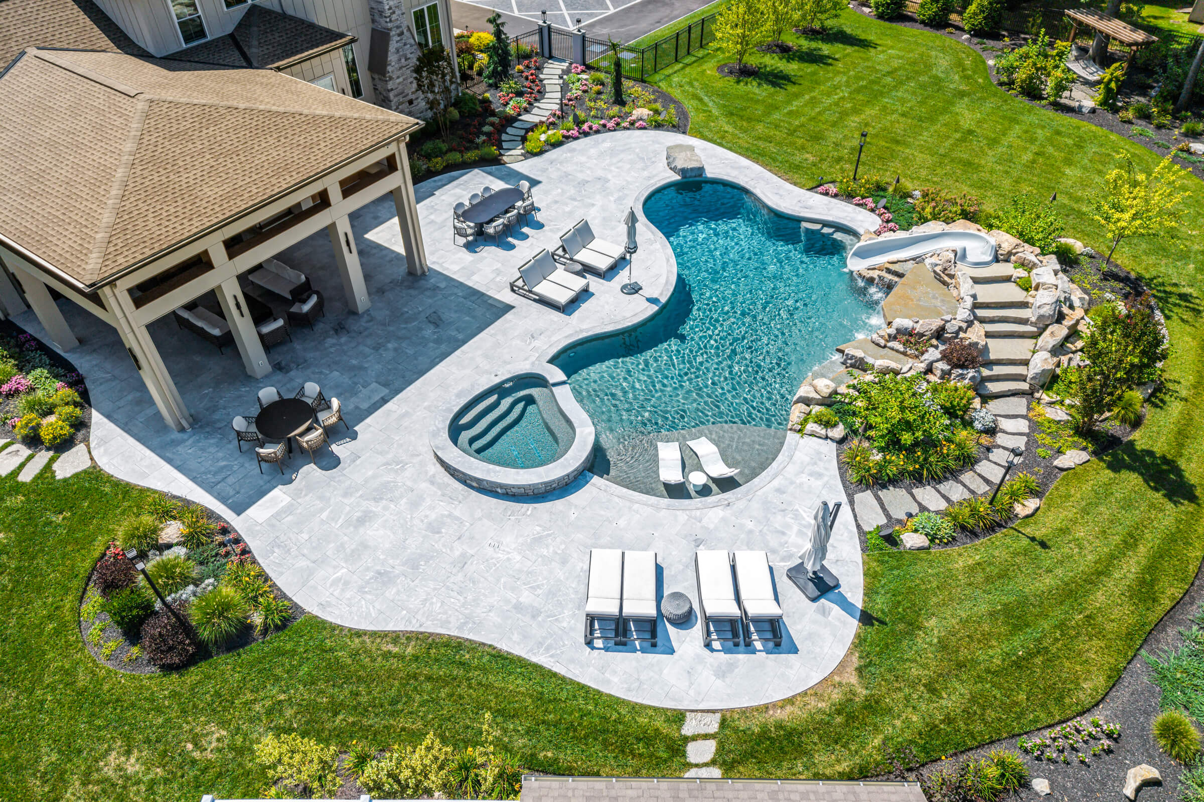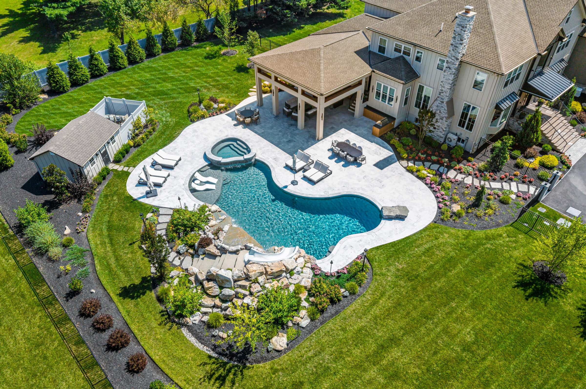 Freeform Pool With Raised Spa and Covered Patio In Ambler, PA